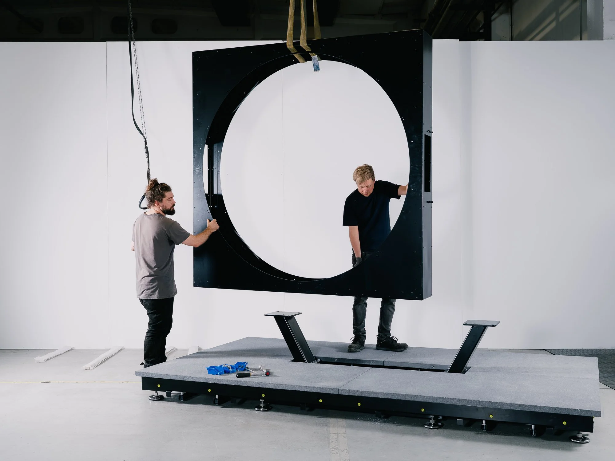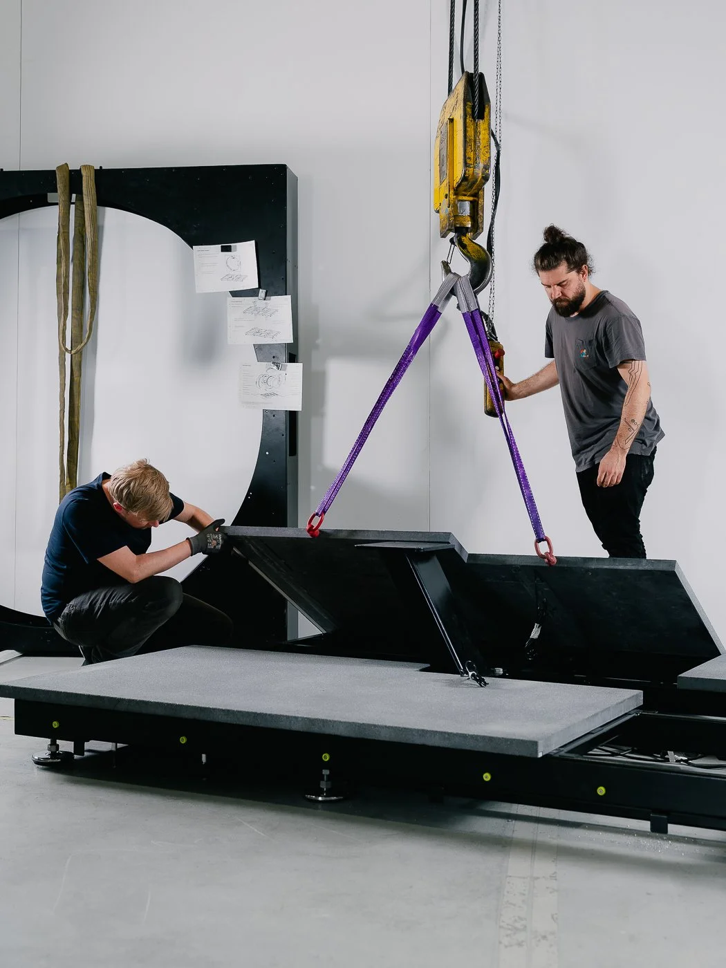To make these sculptures globally deployable, Helldorfer Engineering, in collaboration with Nicholas Perillo (Augmentl Studio), completely re-engineered the original 10-ton monolith. The result is a 3.2-ton modular steel and concrete structure that fits into a shipping container and can be assembled within days - while maintaining the iconic, otherworldly presence of the original design.